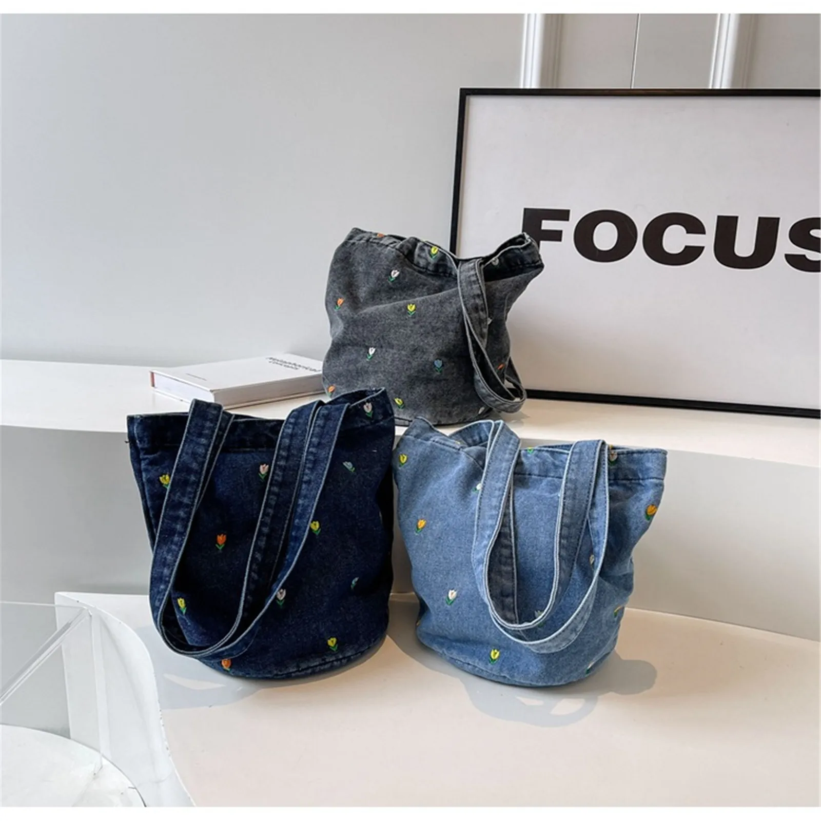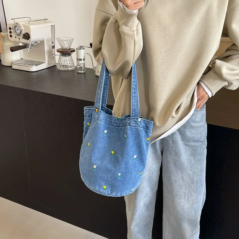 Le compagnon idéal : 2025 Sac Fourre-tout En Jean Brodé Pour Femme